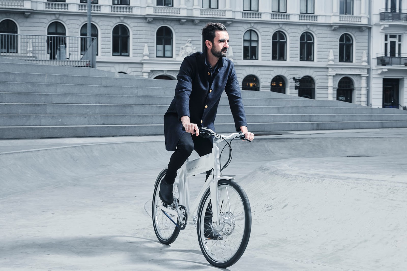 El diseño cuenta con un cuadro ligero de carbono con guardabarros integrados, un manillar de aluminio, con un peso total cercano a los 18 kilogramos, algo verdaderamente ligero para tratarse de una bicicleta eléctrica. El motor eléctrico se encuentra en el centro de la barra transversal para distribuir su peso uniformemente lo cual consigue ofrecer una sensación muy similar a la de utilizar una bici convencional. Está disponible en tres tamaños, con dos velocidades automáticas o ocho velocidades electrónicas y frenos de disco para una buena frenada.