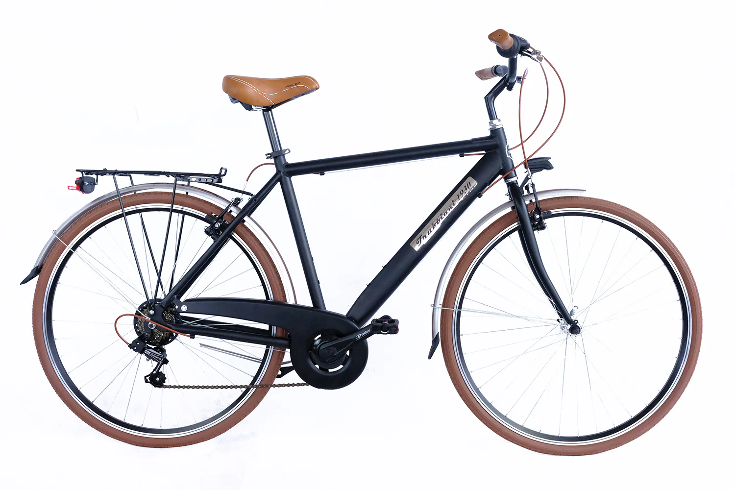 Montegrappa, modelo City Line. El modelo City de barra alta viene con un cambio Shimano de 6 velocidades y frenos v-brake.